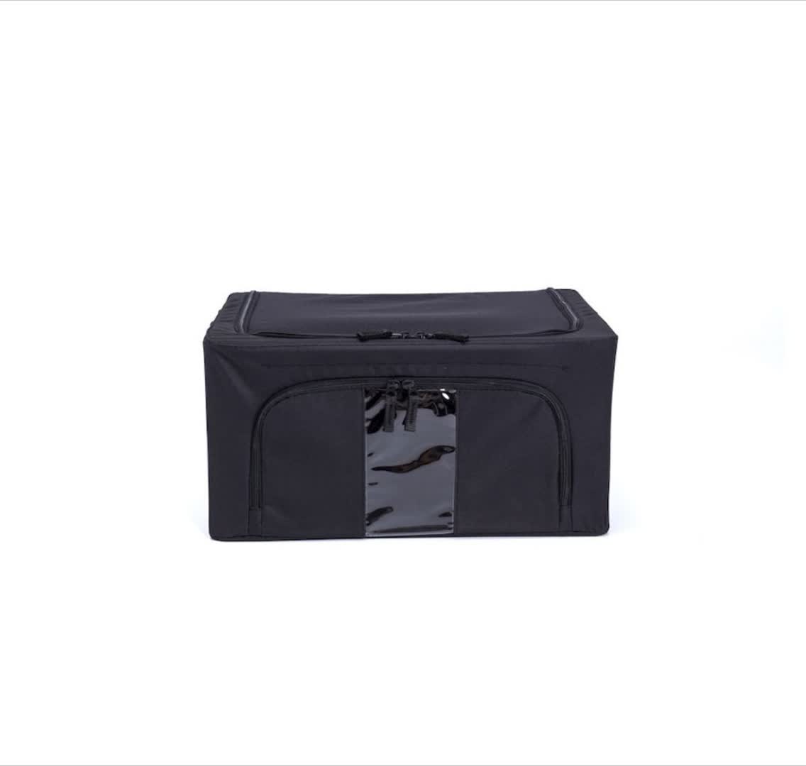 باکس لباس اسکلت دار یک نظم دهنده فوق العاده کاربردی و چند منظوره میباشد که با استفاده از آن میتوان گنجایش کمد لباس خود را به شکل قابل توجهی افزایش داده و کمد لباسی مرتب و سامان یافته داشته باشید ، رنگ مشکی کلاسیک به این نظم دهنده لباس نمای جذابی بخشیده است که با باز کردن درب کمد احساس خوشایندی به شما انتقال میدهد ، البته که محل استفاده از باکس برزنتی محدود به کمد نمیشود و میتوان از آن در موقعیت های مختلفی چون زیر تخت ، روی میز ها و حتی صندوق عقب خودرو استفاده کرده و نظم را به آن محل هدیه کنید.