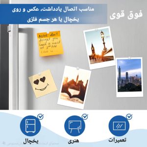 آهن ربا فوق نازک با قدرت باورنکردنی کاربردهای زیادی دارد از چفت کردن درب کشو و کابینت هایی که مدام بدون دلیل باز میشود تا متصل کردن یاد داشت یا عکس ها به یخچال یا میز کامپیوتر و یا اهنربایی کردن ابزار ها مثله پیچ گوشتی تنها گوشه ای از کاربرد های این محصول است.