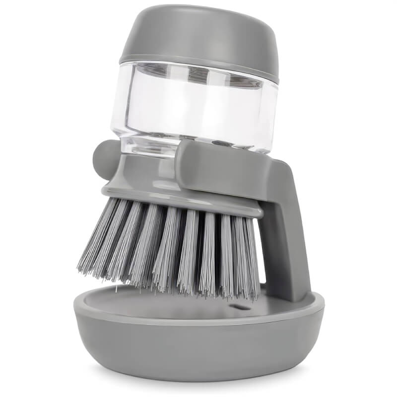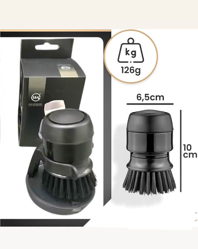 برس شستشو مخزندار دارای یک پایه برای نگهداری در کنار سینک و جلوگیری از باقیماندن رطوبت بر روی برس و ایجاد بوی نامطبوع که از برند WS بسیار با کیفیت ساخته شده از مواد PU که قدرت انعطاف پذیری بسیار بالایی دارد دارای یک مخزن برای ذخیره مایعات و همچنین سری سیلیکونی که با هر مرتبه فشردن مقداری مایع آزاد می شود.