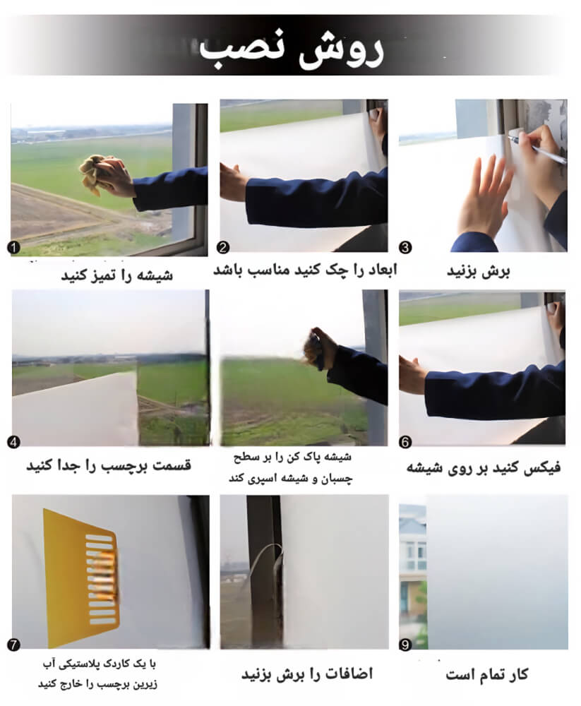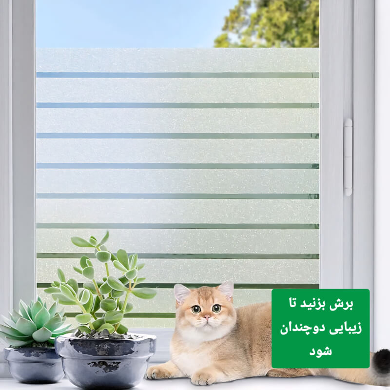 برچسب مات کننده شیشه با کیفیت بسیار بالا تولید فروشگاه ۷۰کالا به هیچ عنوان مشابه هیچ مدلی در مراکز خرید نیست ضخامت و سهولت نصب و همچنین تنوع در مدل نصب از بارز ترین ویژگی های این محصول است.