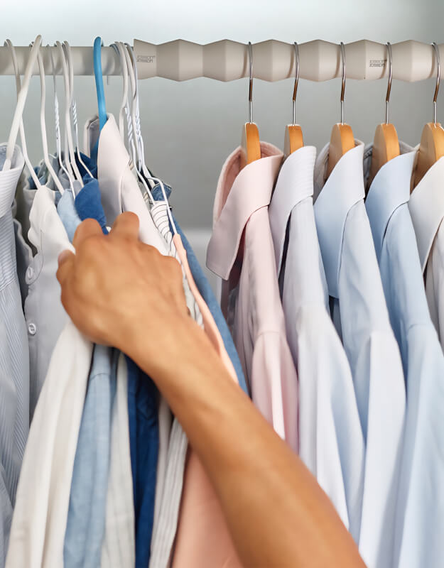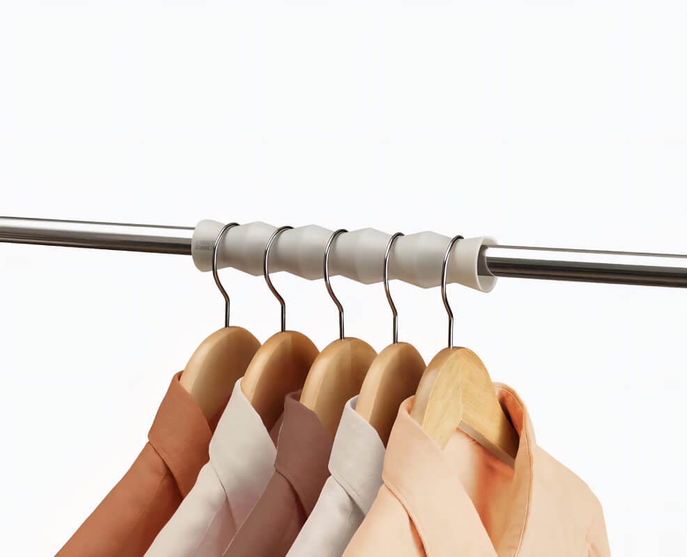 نظم دهنده جالباسی در بسته 2 عددی که در لولهچوب لبلسی قرار میگیرد و مرتب 10 چوب لباسی را با فاصله های معین و منظم در یک راستا مرتب می کند.