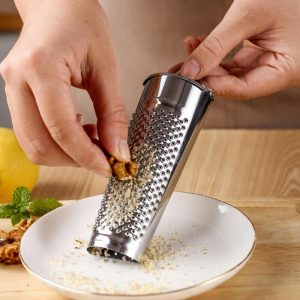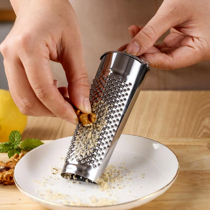 رنده همه کاره دارای یک مخزن تمام استیل و کیفیت بسیار بالا با یک دسته ارگونومیک که به هیچ عنوان از دست رها نمی شود و به دست آسیب نمی رساند همچنین میتوانید هر چیزی مثله جوز هندی که یک ادویه خوشمزه و پرکاربرد هست و یا سیر را رنده کنید و استفاده کنید.