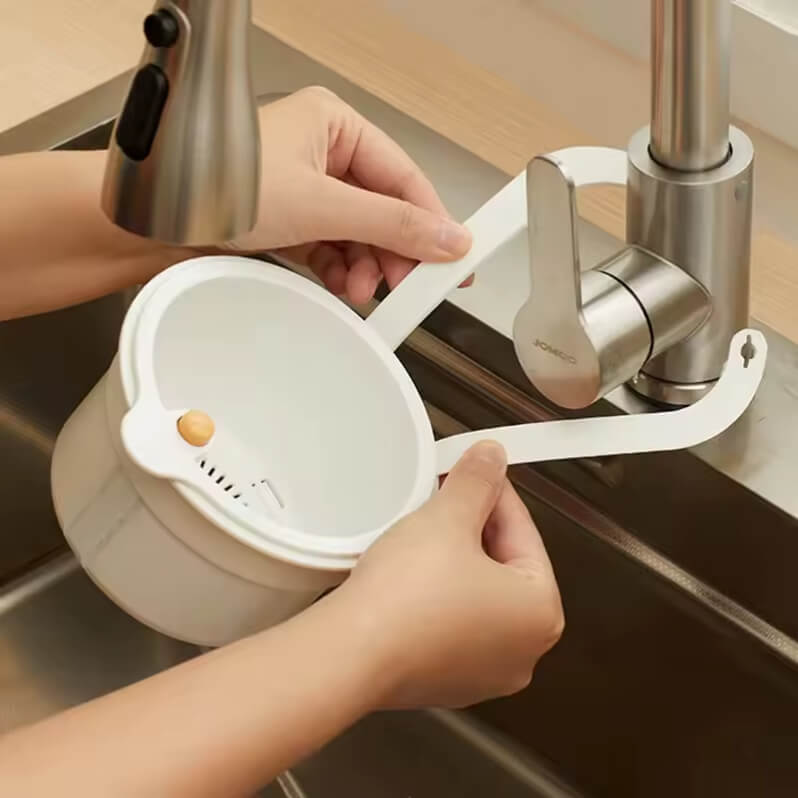 کاربردی ترین سبد تفاله گیر اتوماتیک این محصول بی نظیر است با کمک یک قلاب به دور شیر آب متصل می شود و در صورتی که نیاز به تخلیه داشته باشید میتوانید سبر دا بردارید و با فشردن یک کلید تمامی مواد داخل آن تخلیه می شود.