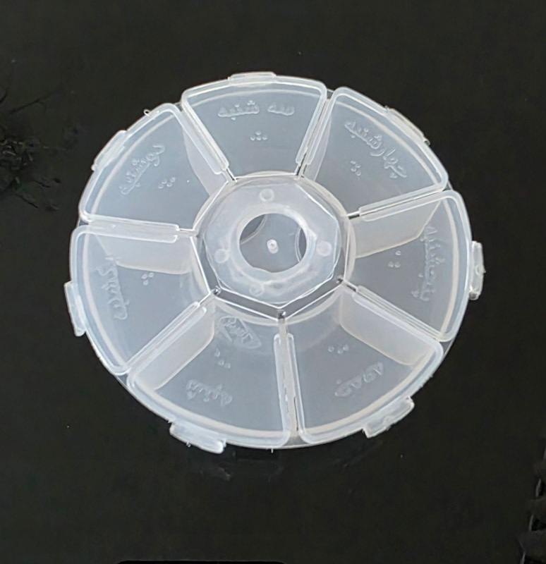 ظرف دارو 7 قسمت با درب شفاف و طراحی ویژه خود به راحتی در جیب شما جای میگیرد و می توانید در هر کجا و هر زمان به راحتی با خود همراه ببرید و برای روزمره یا هفتگی استفاده کنید.