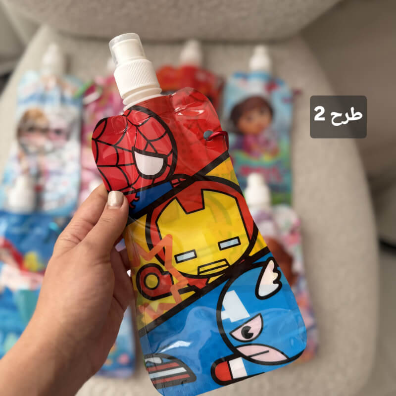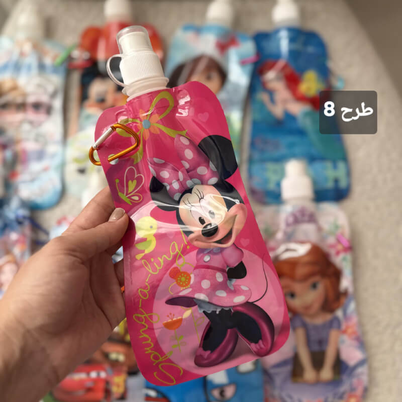 قمقمه نوشیدنی تاشو طرح فانتزی با درب ضد نشت و همچنین یک گیره فلزی قلاب دار بسیار محکم که میتوانی چه برای خود و کودکان و نوجوانان برای همراه بردم نوشیدنی های با خود بدون اشغال فضا در قبل (اویز کنید به کیف خود) و بعد از نوشیدن.