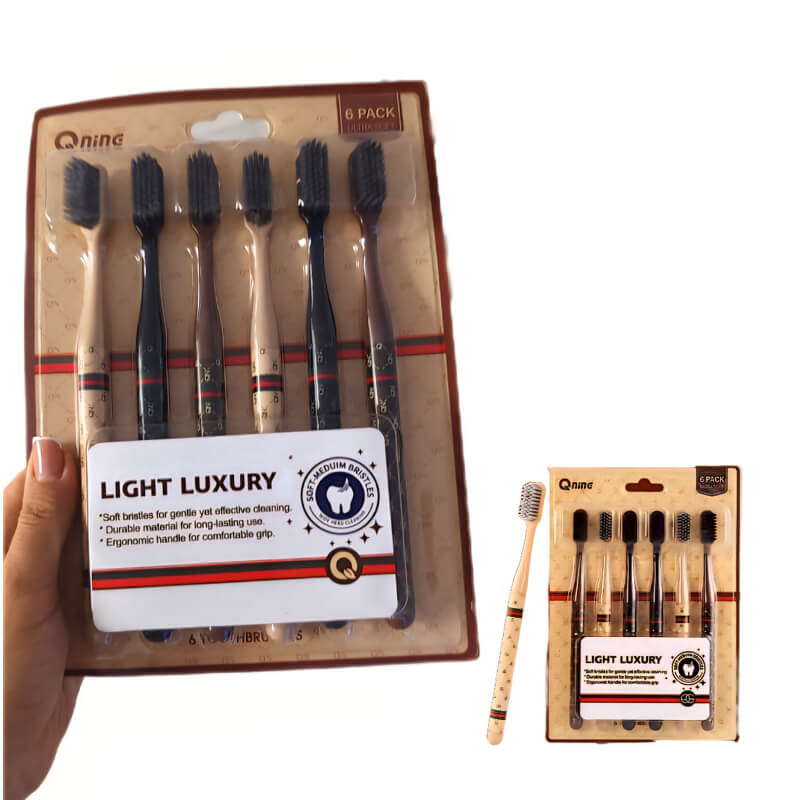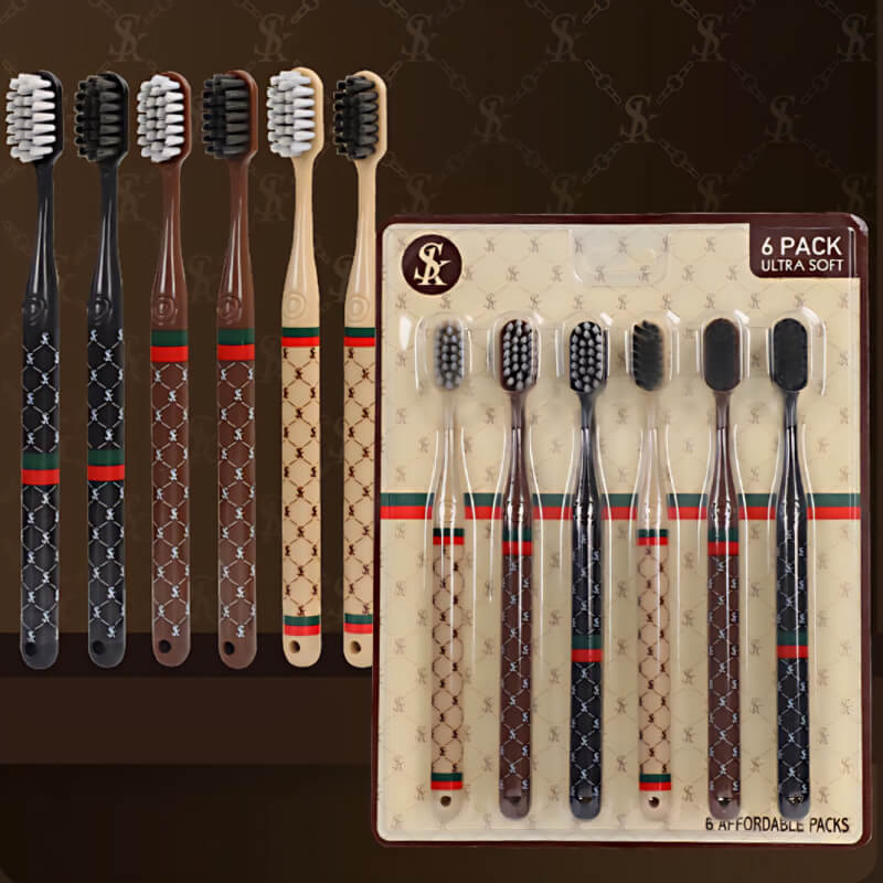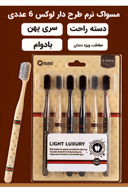 مسواک 6 عددی لوکس وارداتی با کیفیت بسیار بالا و طراحی جدید پهن تر که مسواک زدن را بسیار ساده و اصولی تر میکند برای شما دارای بافت با تراکم بسیار بالا می باشد تا تمام زوایای دندان را پوشش دهد و شما را از نخ دندان کشیدن که باعث فاصله بین دندان ها میشود بی نیاز کند.