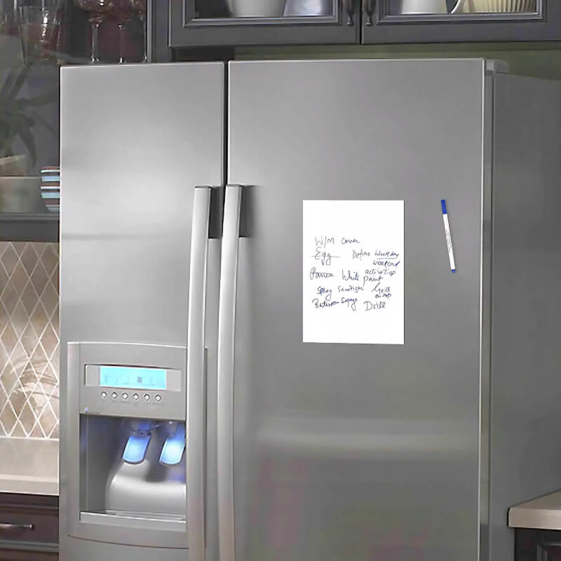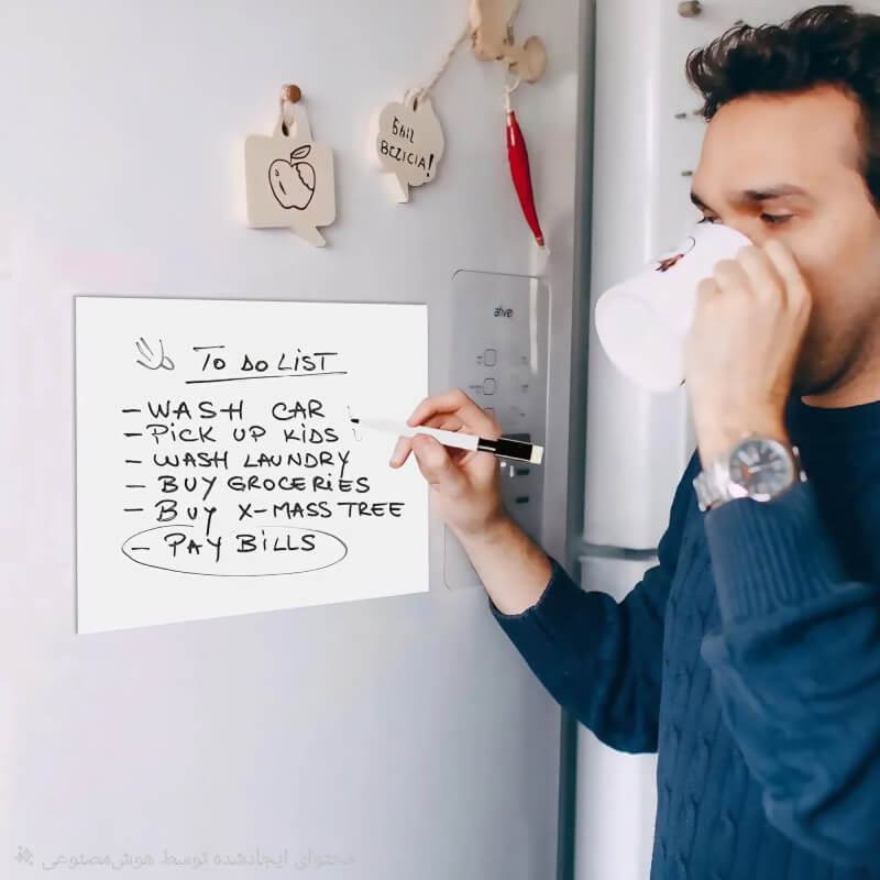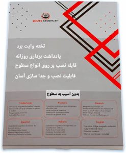 تخته وایت برد چسبی که بر روی هر سطح قابله نصب می باشد و به هیچ عنوان به سطح هر چقدر حساس آسیب وارد نمیکند و میتوانید بارها و بارها به راحتی محل را تغییر داده یا به صورت افقی یا عمودی بر روی درب یخچال، کابینت، میز، پنجره و محل رفت و آمد روزانه نصب کنید و برنامه ها و یا هدف های روزانه را در آن بنویسید.