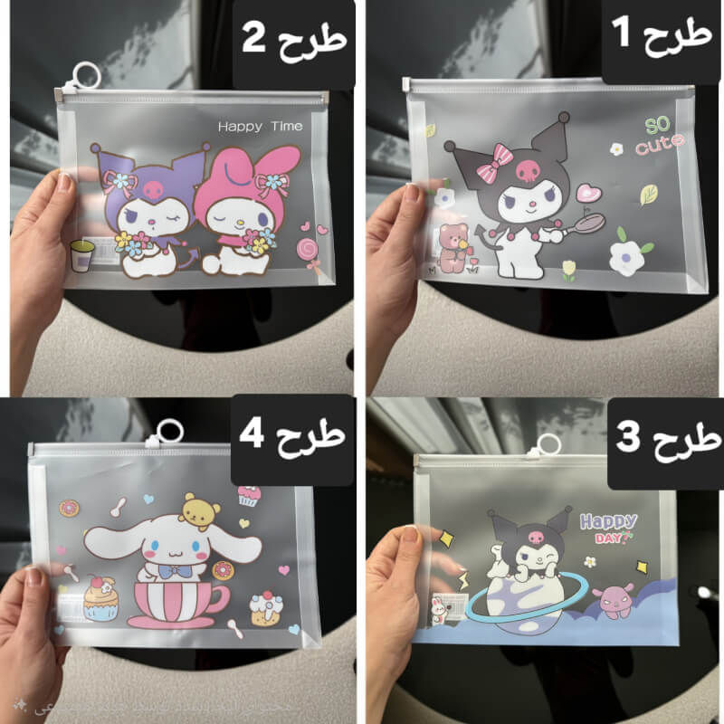کاور فانتزی زیپدار A5 و A3 و A6 که به جای کیف دستی یا جامدادی و نظم دهنده کاغذ یادداشت و غیره استفاده میشه و با طراحی بسیار جذاب و فانتزی میتونید داخل کلاس درس و تو خونه و محل کارتون استفاده کنید. خیلی جذاب و دوست داشتنی با داشتن زیپ و جنس پلاستیکی ضدآب و رنگ مات که خیلی حس خوبی بهتون میدهد.