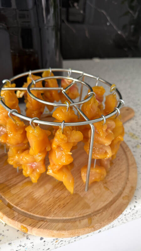 کباب پز مخصوص استفاده در هواپز و فر که قطعات کوچک گوشت و مرغ و ماهی یا هر چیزی را بدون آب پز شدن کباب کرده و با گردش هوا و حرارت منظم پختی یک دست و با کیفیت را به شما تحویل می دهد.
