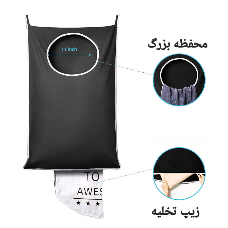 کیسه آویزی رخت چرک یک نظم دهنده کاربردی و سودمند میباشد که به کمک آن میتوان انواع لباس چرک را در یک محل خاص و بدون قاطی شدن با سایر لباس هایی که تمیز هستند تا زمان شستشو نگهداری کنید . این کیسه جا دار لباس چرک دارای دو قلاب آویز میباشد که امکان نصب آن را در هر محلی فراهم میکند . برای راحت تر شدن تخلیه لباس ها در قسمت زیرین کیسه یک زیپ با کیفیت تعبیه شده که با باز کردن آن میتوان به راحتی تمام لباس های چرک را در کمترین زمان ممکن تخلیه کرد و همچنین پارچه اسپان 95 گرمی ضد آب از بو گرفتن لباس ها و یا نشت نم لباس ها به خارج جلوگیری میکند.