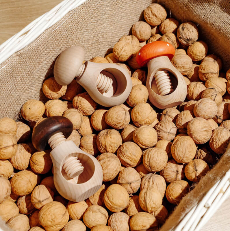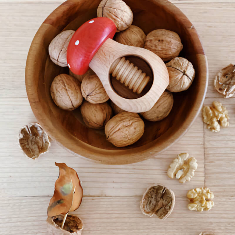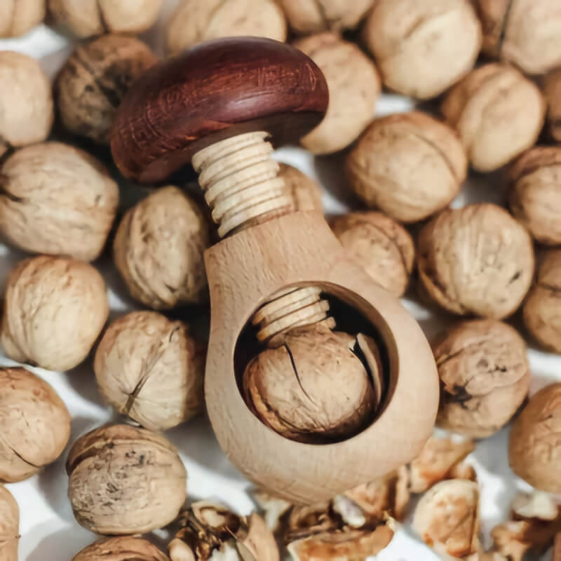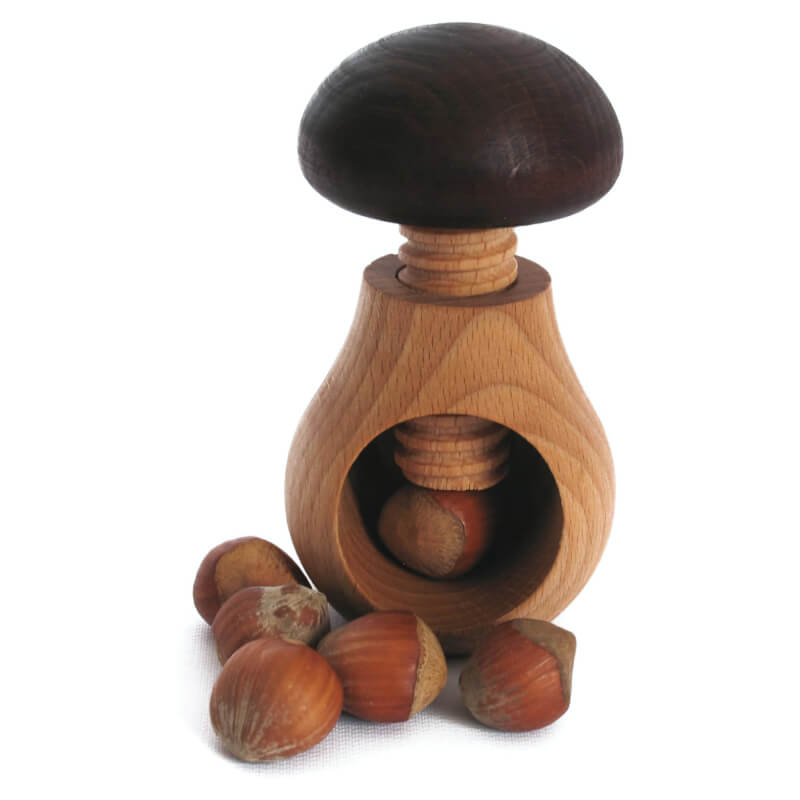 گردو و تنقلات شکن طرح قارچ تماما چوبی با چوب یک تکه که میتوانید به حالت پیچی هر نوع تنقلات را فقط با چرخاندن دسته قارچ مانند آن مغز کنید و از آن استفاده کنید.